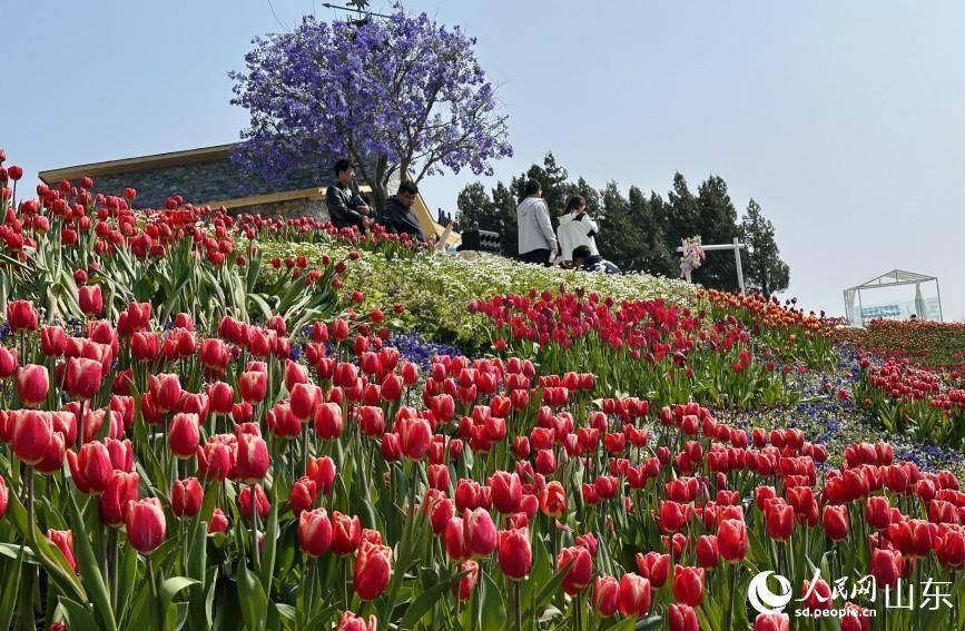 海拔600余米的山坡上,红色郁金香竞相洞开。东说念主民网记者 乔姝摄