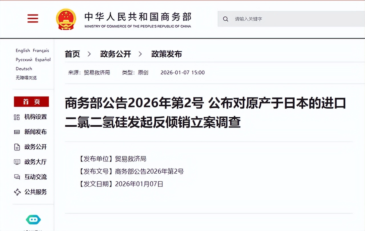 商务部新闻发言东谈主明确浮现,此举依据《中华东谈主民共和国出口经管法》等法律章程,标的是珍摄国度安全和利益、执行防扩散海外义务,任何国度或个东谈主若试图将中国产两用物项转供日本,王人将被照章根究包袱。紧接着1月7日,中方再出重拳,发布第2号公告,对原产于日本的二氯二氢硅发起反推销立案访问。